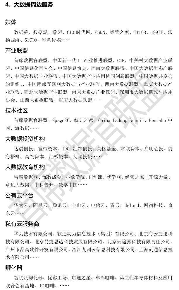 2017《中国大数据企业排行榜》V3.0从数据准备、数据交易、基础服务、行业应用、领域应用、人机交互、挖掘分析、基础技术服务、智慧城市和大数据周边领域等10个大类64个细分领域)对国内大数据企业进行全方位的细分与展示。继续延续2016《中国大数据企业排行榜》的架构,将《中国大数据企业排行榜》、《中国大数据产业地图》、《中国大数据业产业分析》、《大数据企业评价指标》合并为白皮书一同发布,从行业分析、产业地图、企业排行等多个维度,更加全面的透视中国大数据产业发展。