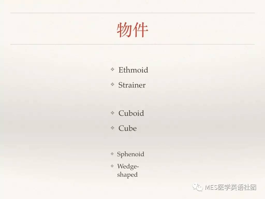 “解剖学名词的真面目”迎来了终结篇。本期MES将会为大家带来解剖学名词中“各式各样”的词汇——许多解剖结构的命名是依据它们的形状与其它事物比较得来的,比如甲状腺、人字缝等等,都有特殊的形态特点。今天我将为大家一一列举解剖学名词中以其形状命名的各类词汇,希望可以帮助大家记忆。