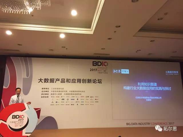 3月28日至29日,由工业和信息化部指导、中国信息通信研究院与中国通信标准化协会主办、数据中心联盟大数据发展促进委员会承办的“2017大数据产业峰会”在北京国际会议中心召开。拓尔思副总裁刘瑞宝先生应邀出席此次峰会,并在大数据产品和应用创新论坛上,发表“利用知识图谱构建行业大数据应用的实践与探讨”的主题演讲。
