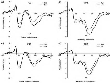 当我们用禁止类、警告类、指令类等不同类别的警示信号词,作为视觉刺激呈现给被试者,图四额中央区(如Fz电极位)和中央顶区脑(如CPz 电极位)的ERP的两个成分P200与LPP,在高低风险之间,都有显著差异[1]。该研究从ERPs角度为C-HIP模型提供了总体一致的电生理证据。