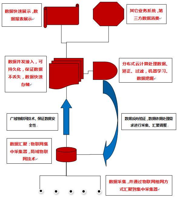 从数据流向来设计包括:数据采集、数据汇聚、数据传输、数据持久化、数据展示、数据处理、数据矫正、数据消费。