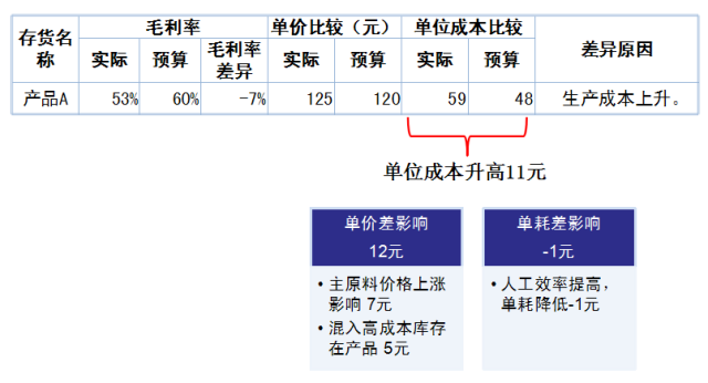 目标利润和实际利润的差异、产品结构差异、标准成本和实际成本差异