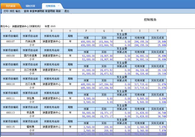 借助ERP平台,实时对预算项目进行控制、实时查询各部门预算执行情况。