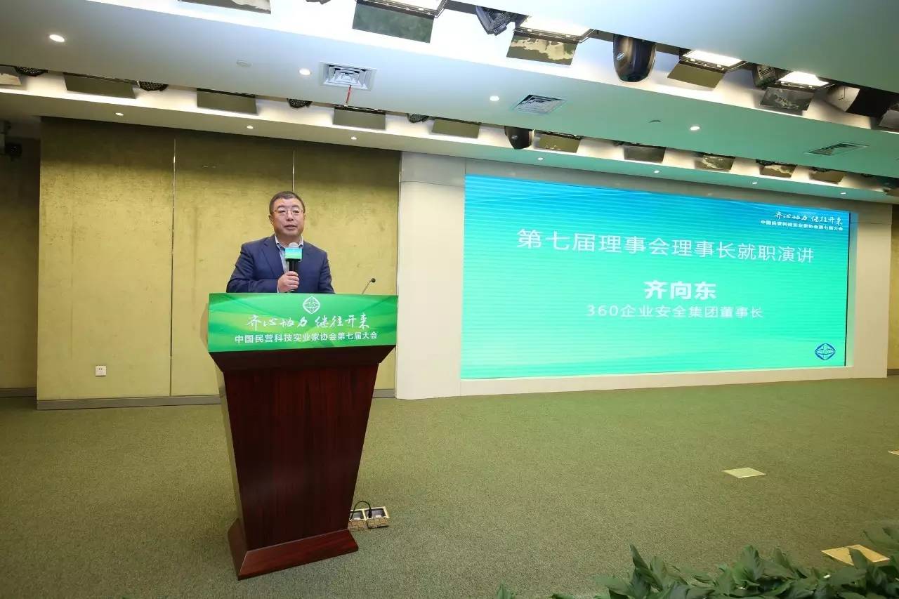 4月8日,中国民营科技实业家协会第七届换届大会暨第七届第一次理事会在京召开。经过全体理事和会员代表投票选举,360企业安全集团董事长齐向东当选第七届协会理事长。齐向东在发表就职演说时表示,实业与互联网的结合,是科技实业家迎来的又一个春天,工业互联网革命为科技实业家创造了机会,网络空间安全、军民融合为民营科技实业家开拓了一个全新的市场,应抓住工业互联网革命的机会再创辉煌。