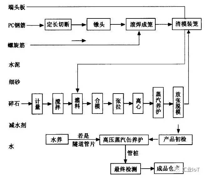 1管桩制品行业的传统工艺流程及存在的问题管桩制品行业的传统工艺流程及存在的问题在对混凝土制品行业中的管桩管片生产加工企业的传统生产流程进行详细剖析后,可以清楚地发现当前的混凝土制品生产企业与其他传统制造业类似,均存在能耗高、污染大、自动化水平低、工作环境危险恶劣、生产效率低等共性问题。除此之外,管桩生产企业还存在以下问题: