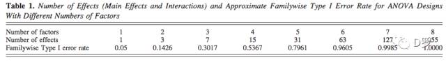 表1和图3分别说明了方差分析中的效应数和因子数与I类错误间的关系