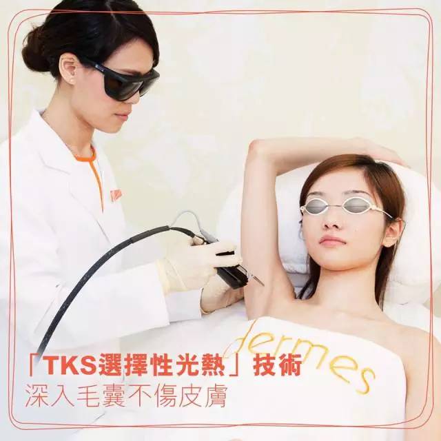 dermes的“选择性光热技术”能深入毛囊,将只会被黑色素吸收的光能转为热能,光能安全地沿着毛发进入毛囊,抑止其生发能力,达到持久的脱毛效果。