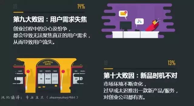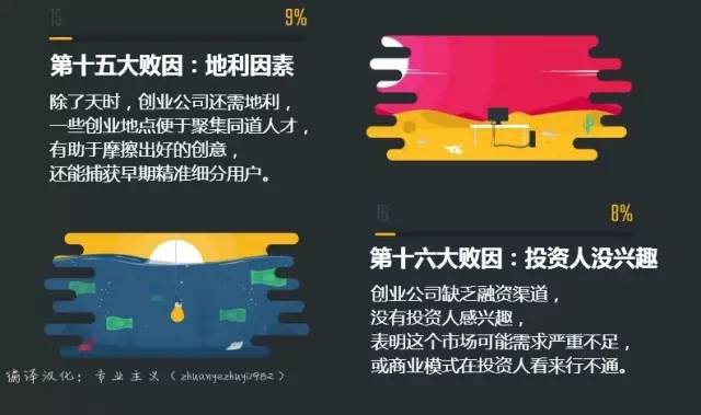 从这个角度看,我们需要对创业失败的原因进行一些总结和分析。美国纽约的风险投资数据公司CB Insights,近日在调查、访谈及研究101家失败的创业公司案例后,总结了20大败因。跟你想象的可能不太一样,创业失败的最大原因,并非缺少资金。我对CB Insights的这个报告图文做了简单编译汉化处理。此前推送的一篇《创业公司倒闭名单里潜藏的秘密》,可对照阅读。