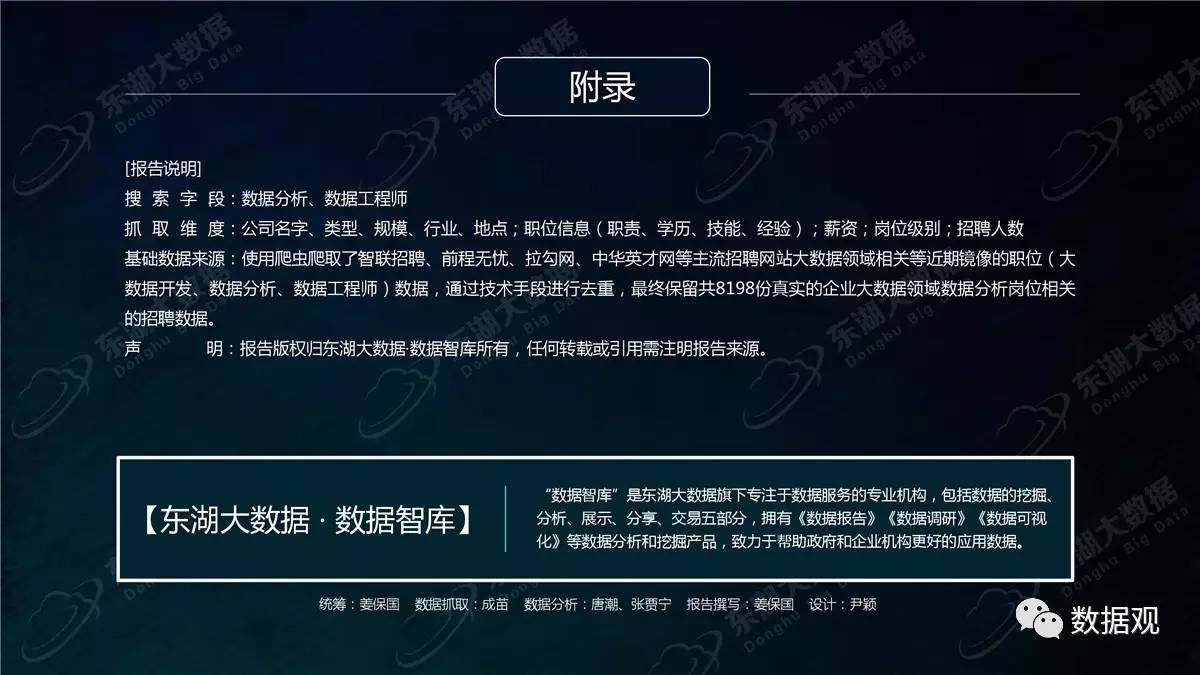为此,东湖大数据·数据智库获取8198份真实的企业大数据领域数据分析岗位相关的招聘数据,具有针对性的发布《2017大数据分析师能力模型与企业需求报告》,以多维度视角全面探究大数据分析人才的进阶之路与生存现状。