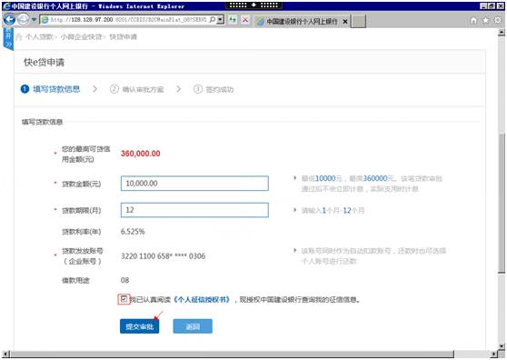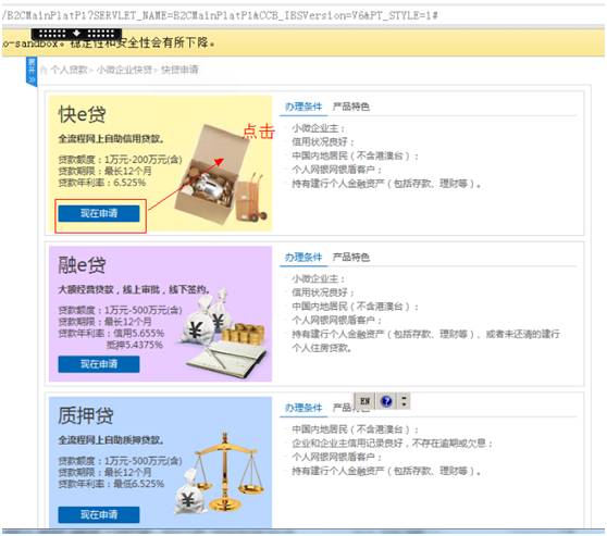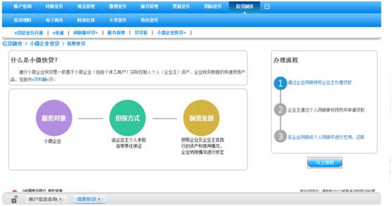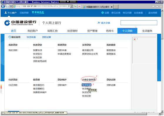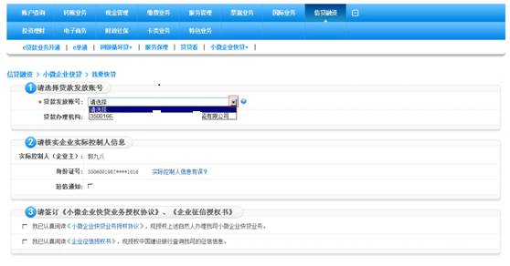 3、登录已被授权的企业实际控制人的个人网银进行贷款申请