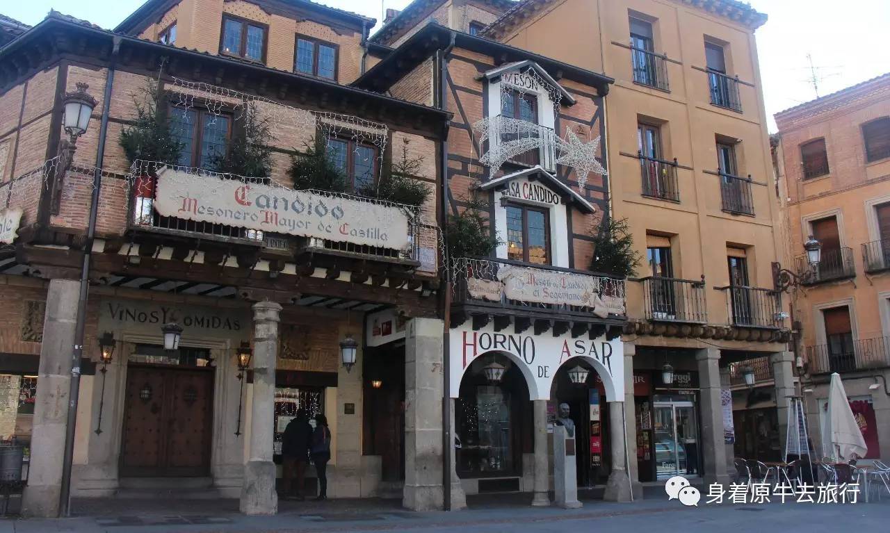 塞戈维亚大名鼎鼎吃烤乳猪的Mesón de Candido餐厅就位于古罗马水渠旁,Mesón de Candido餐厅是一家百年老店,现在的掌门人是第四代坎迪多,每次来时都能看到第四代坎迪多的老婆和两个儿子在店里忙来忙去。