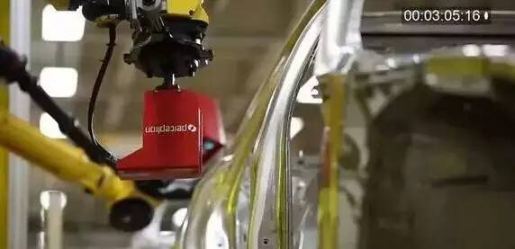 有的机器人干着体力活,也有人干着精细的工作。比如vision测量机器人。整个车身要在哪个位置打孔,这不是依靠人眼或者人手测量的,所有的测量完全由机器人控制, Vision测量机器人用于检测车辆钣金尺寸,重复精度可达0.3mm。