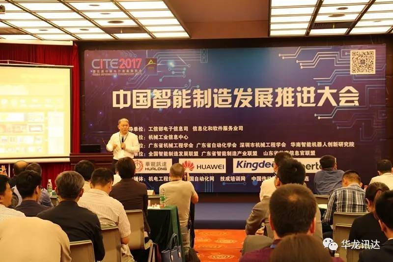 2017年中国智能制造发展推进大会于4月9日在深圳会展中心玫瑰厅举行。本次会议在工信部电子信息司、信息化和软件服务司指导下,由机械工业信息中心主办,全国智能制造发展联盟、广东省智能制造产业联盟具体承办。会议由机械工业信息中心主任刘功效主持,智能制造相关企业、协会、产业组织及行业专家200余人参加论坛会议。深圳华龙讯达信息技术股份有限公司总经理龙小昂应邀发表《基于两化融合的智能工厂管理平台探索与实践》主题演讲。