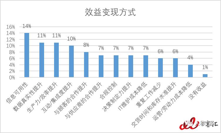 虽然公司在变革管理方面没有投入足够的精力,但是他们似乎对业务流程提升更为重视。如下表,82%的受访者表示在关键或者所有业务流程方面有提升。