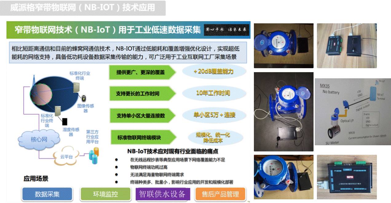 NB-IoT网络通信技术极符合智慧供水系统中对设备数据采集、运维优化指令下发的需求,NB-IoT的低功耗、强穿透力、大连接的技术性能,是对本项目一体化水务网络的必要补充。