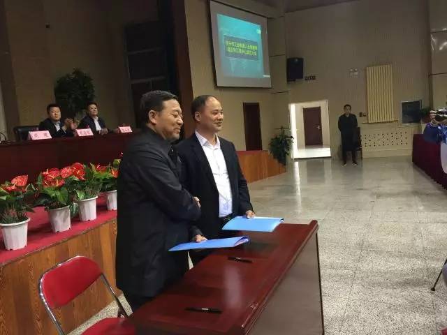 党委委员、副院长张延明与包头市设备管理中心协会会长崔海军共同为包头市工业机器人行业专业人才培养基地揭牌。