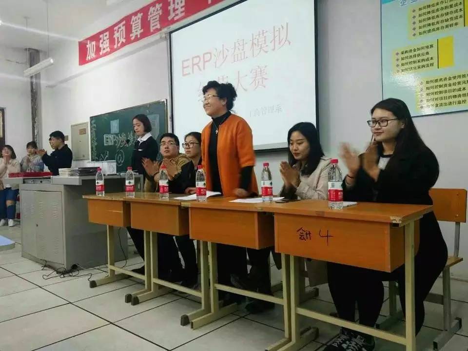根据学院团委《关于开展“科技点亮梦想 知识点亮人生”首届校园科技文化节的通知》的相关安排, 结合我系专业特色,在系主任韩波主任,党总支书记郑丽芬,学工办主任董迪,团总支书记王飞越的悉心指导下,工商管理系于4月10日晚,在第二教学楼544室举办了ERP模拟经营创新大赛决赛。