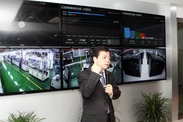 “通过两化融合电子看板,我们可以实时监测整线的生产计划、工序设备、车间动态等情况。”终端电器制造部总经理江玉坤为调研组一行介绍了正在建设中的集制造执行系统(MES)、智能物流与仓储(WMS)、精益电子看板、能效管理(EMS)等系统与功能于一体的小型断路器数字化车间。