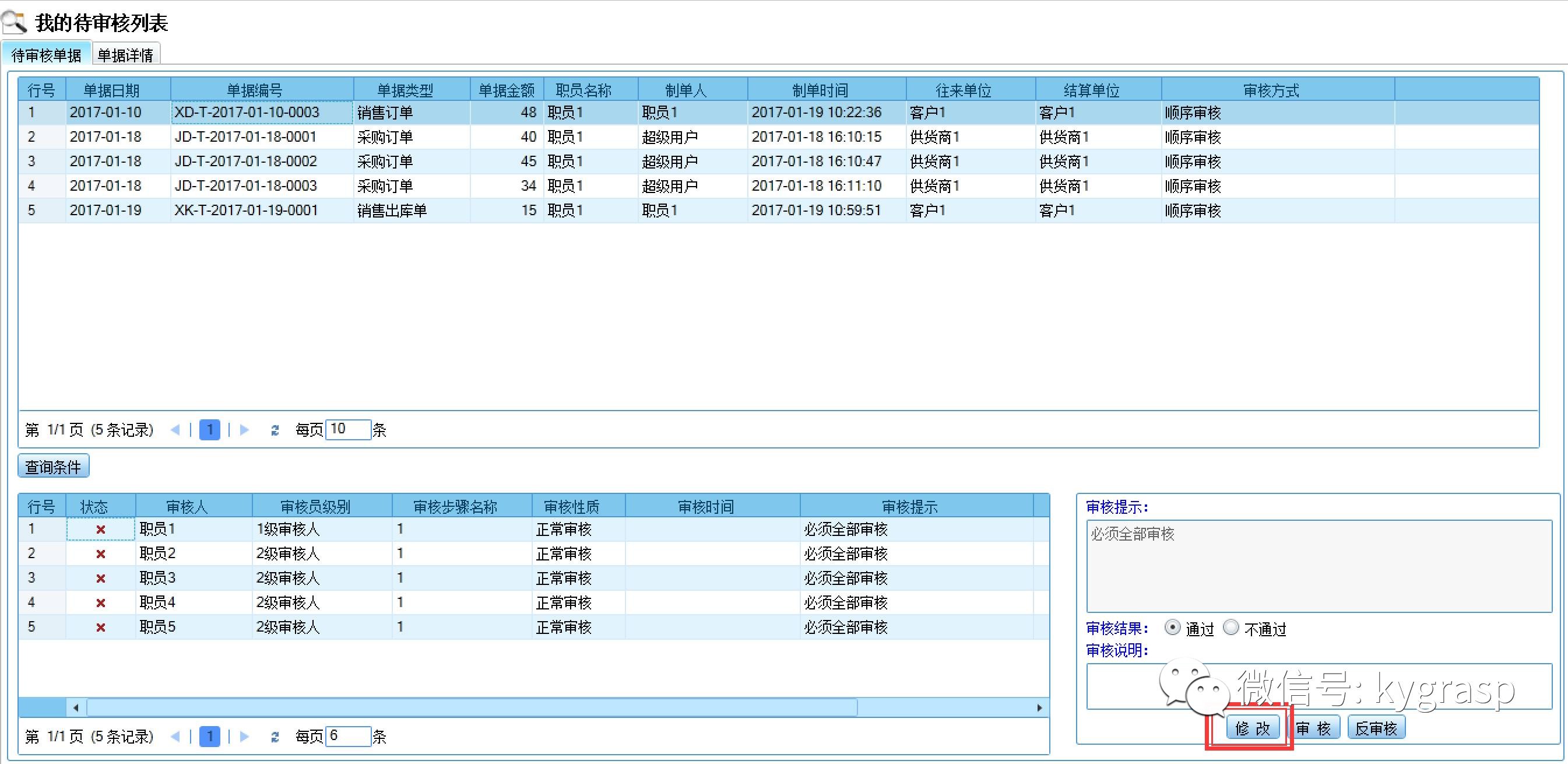 分销ERP待审核页面直接修改单据