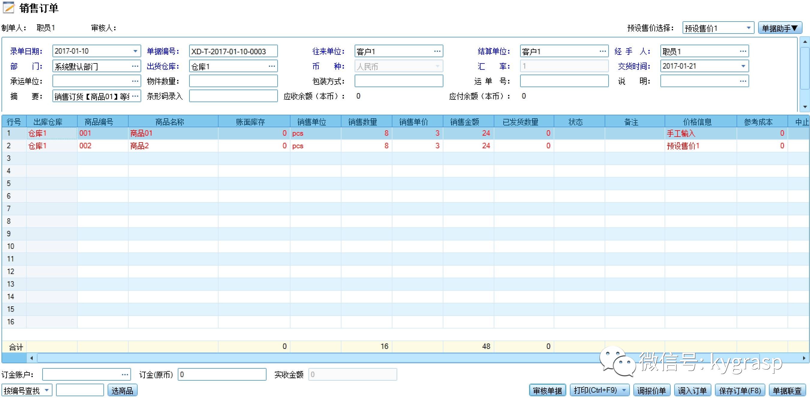 熟悉的销售订单页面,此页面具体哪些字段可修改如何修改可控制,如:不能修改往来单位,数量单价只能改大或者改小,是否允许新增商品等皆可控制!