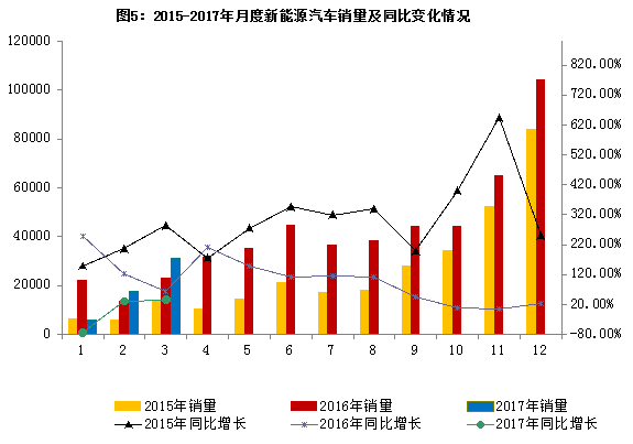 1-3月,新能源汽车生产5.8万辆,销售5.6万辆,同比分别下降7.7%和4.7%。其中纯电动汽车产销分别完成4.8万辆和4.4万辆,同比分别增长2.9%和4.4%;插电式混合动力汽车产销分别完成1.0万辆和1.2万辆,同比分别下降37.5%和28.4%。