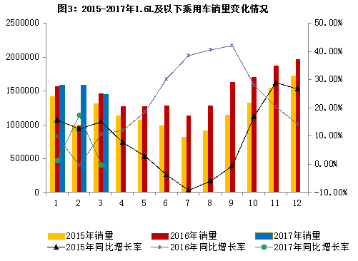 3月,1.6升及以下乘用车增速减缓,本月销售145.1万辆,同比下降0.1%,占乘用车销量比重为69.2%,同比下降1.3个百分点。