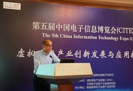2017年4月9日,在工业和信息化部电子信息司指导下,虚拟现实产业联盟、中国电子信息产业发展研究院在深圳市会展中心组织召开虚拟现实产业创新发展与应用推进论坛。工业和信息化部电子信息司副司长乔跃山出席论坛并致辞。来自虚拟现实产业界各环节的有关企业、高校、科研机构以及地方政府的百余名代表参加会议。