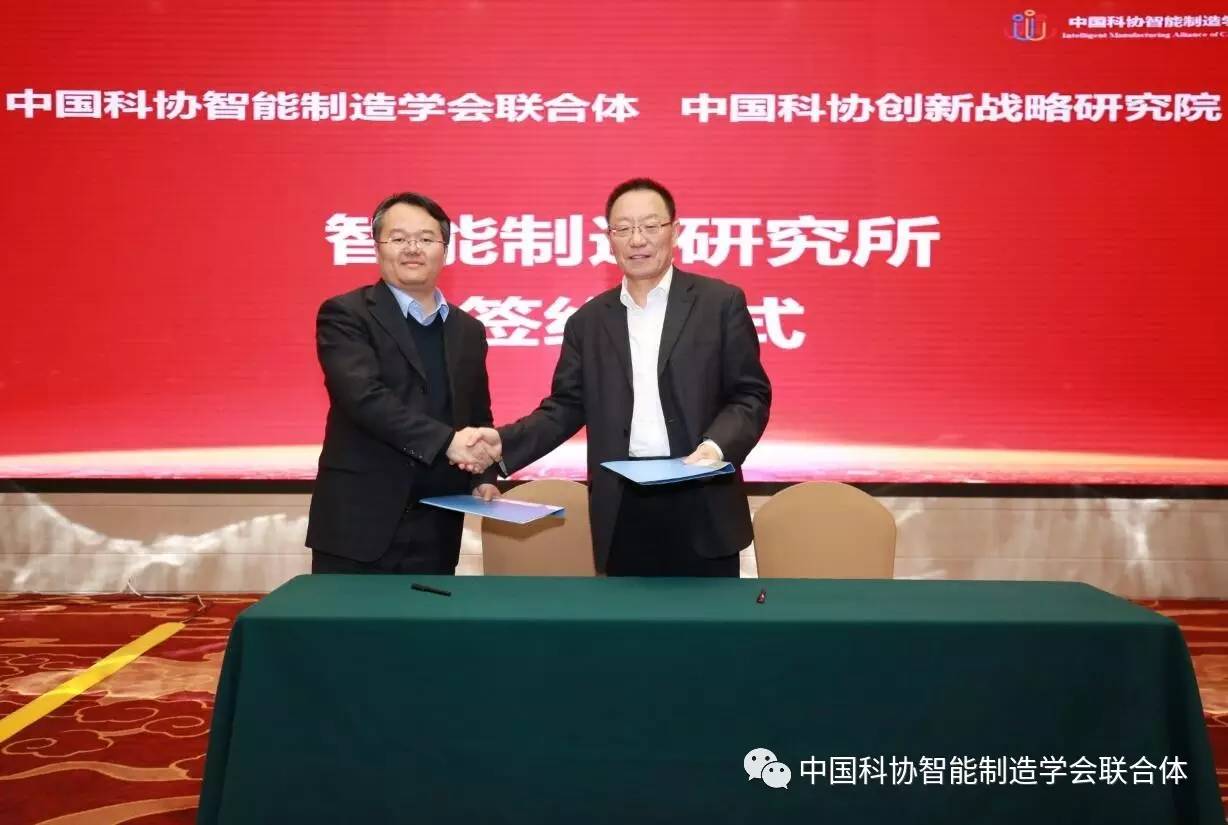 智能制造研究所是中国科协智能制造学会联合体为深入贯彻落实中央《关于加强中国特色新型智库建设的意见》、《科协系统深化改革实施方案》、《中国科协关于建设高水平科技创新智库的意见》以及《中国科协高水平科技创新智库建设“十三五”规划》精神而发起成立的,是中国科协建设高水平科技创新智库体系的重要组成部分。会议期间,中国科协智能制造学会联合体秘书长张彦敏和中国科协创新战略研究院院务委员陈锐代表双方签署了共建协议,王春法书记与尤政院士共同为智能制造研究所揭牌。