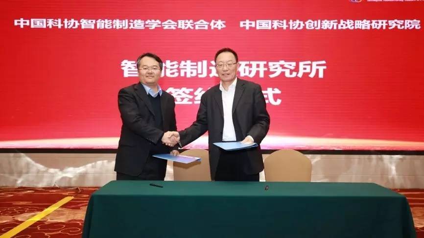 中国科协智能制造学会联合体秘书长张彦敏和中国科协创新战略研究院院务委员陈锐签署共建协议