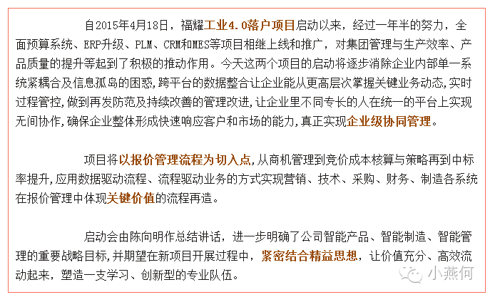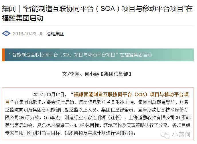 2016年10月17日 福耀智能制造互联协同平台(SOA)项目正式启动