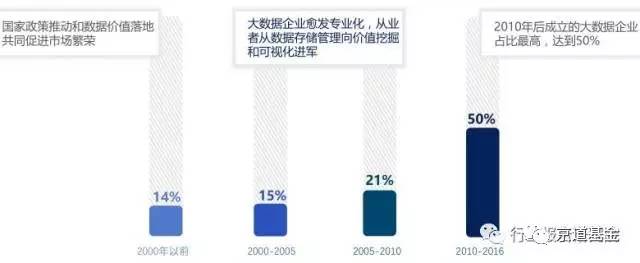 2010-2016年:2010年后成立的大数据企业占比最高,达到50%。