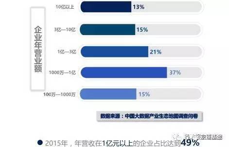 大数据企业盈利能力明显增强,2015年,年营收在1亿元以上的企业占比达到49%。