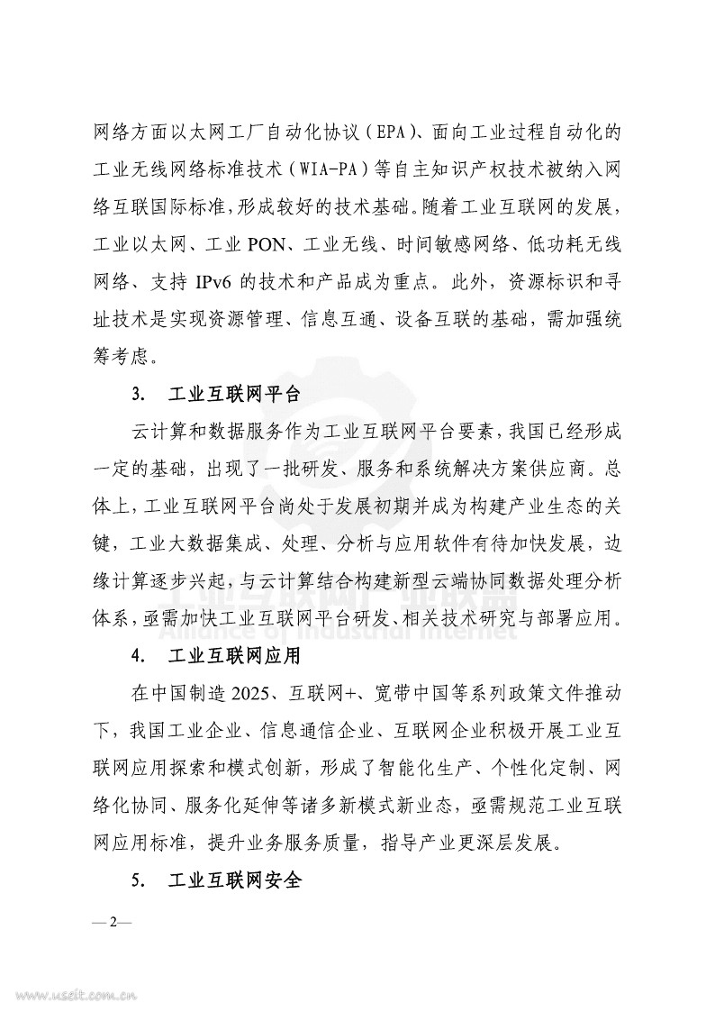 工业互联网涉及工业和互联网等信息通信技术领域的各个环节和各个主体,正形成复杂和全新的生态系统,工业系统联网及协同需求的增加,又带来了大量新的标准化需求。针对现有工业互联网相关标准缺失、滞后及交叉重复等问题,由工业和信息化部指导,工业互联网产业联盟(以下简称AII)启动了工业互联网标准体系的研究。
