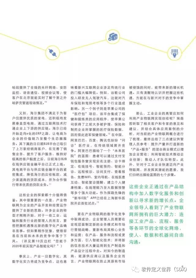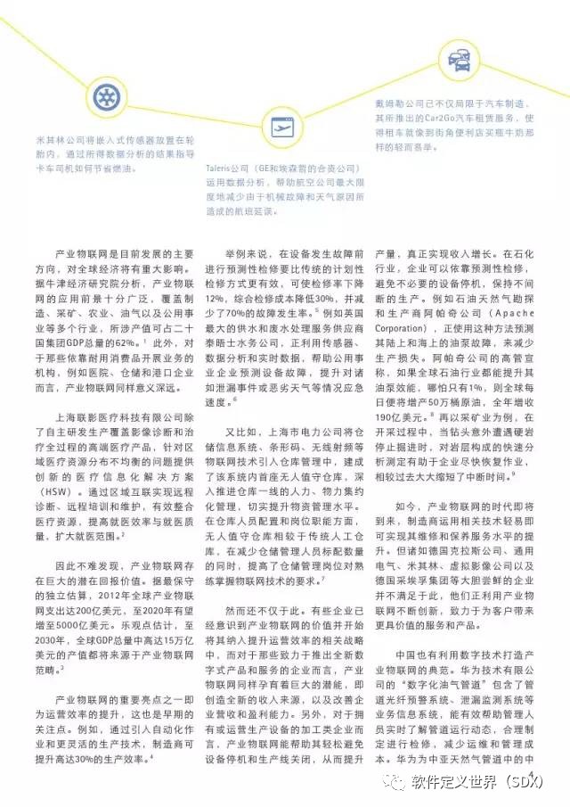 报告借助物联网、工业互联网以及工业4.0的发展趋势,用更为广阔——即以企业为核心,以其产业链视角,来阐述企业在产品、服务方面将会面临哪些发展机遇。报告指出:乐观点估计,至2030年,全球GDP总量中高达15万亿美元的产值都将来源于产业物联网范畴。