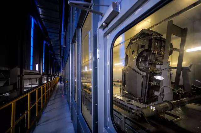 涂装车间共有108台机器人;是行业领先的一条全自动机器人喷涂线,自动化率达到70%