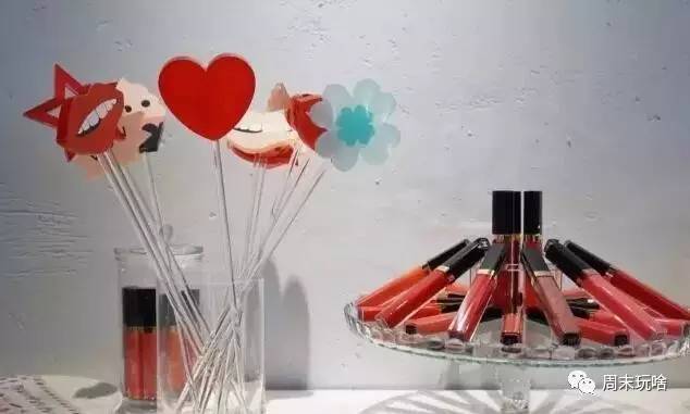 店里全是少女心,比如装模作样弄了几个红色卡座,桌上全是口红和指甲油,你可以坐下慢慢试到满意为止...
