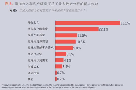 大多数决策者意识到工业大数据分析在重要决策和流程自动化过程中所起的重要作用。69%的受访者认为在未来5年数据分析对于业务成功将变得至关重要。不过,只有15%的受访者认为目前已经很重要了。