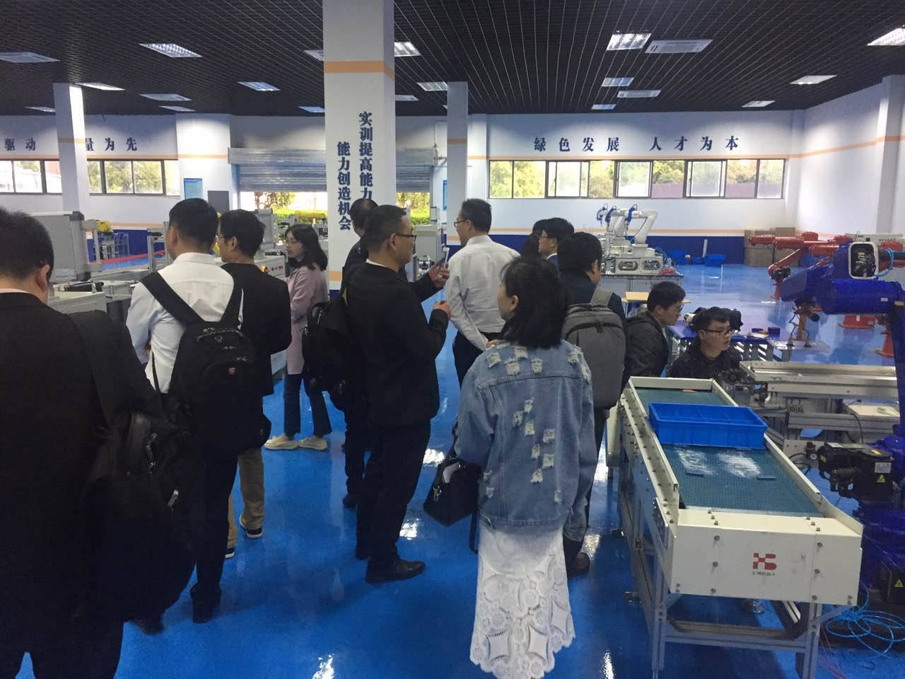在苏州工业园区工业技术学校强校长带领下,全体会员参观了由协会理事单位汇博机器人承担建设的苏州工业园区智能制造产学研基地。