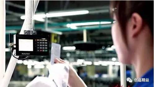 9、缝纫工序上的工人将RFID牌在工位计算机上扫描(下图中缝纫机上方的小屏幕),屏幕显示了制造执行系统(MES)的制造指令,显示信息非常简单,就是单号、款号、线号、扣号、流水号、面料号等少数文本信息,界面比机械、电子行业MES的作业指导简单多了。此外,服装缝纫的现场物料只有线、扣,基本没有生产线送料问题,这也比机械、电子行业需要根据排程进行产线送料计划简单。为加快换线,红领设计了一个小装置,将多个线轴挂在缝纫机上方。