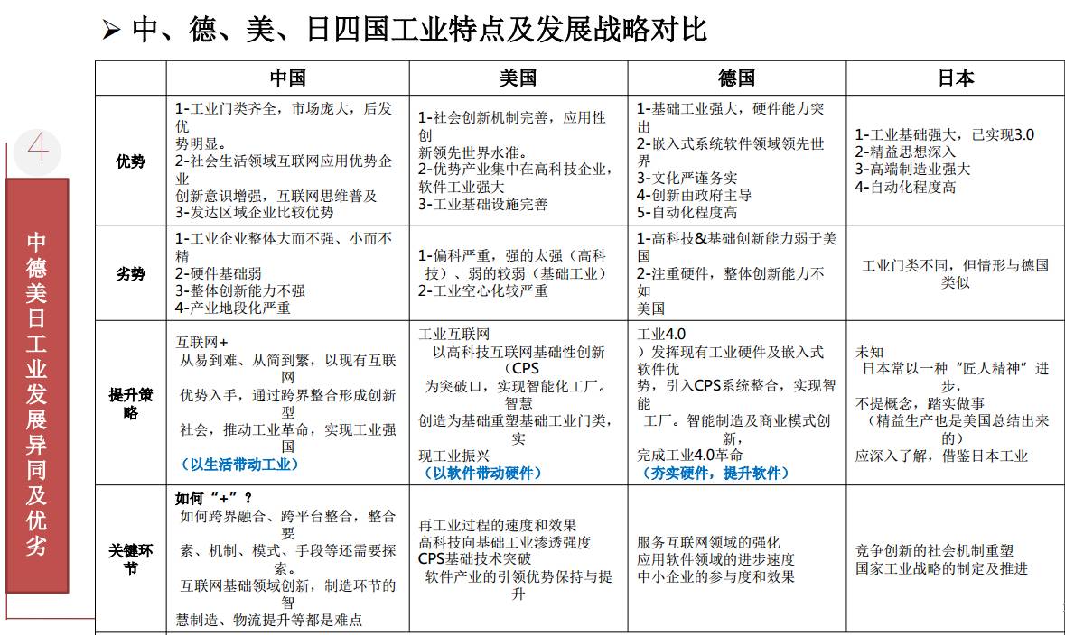 图:中、德、美、日四国工业发展战略对比