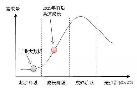 从上文的分析中我们可以清晰地看到,工业大数据应用潜力巨大。但是,就目前的状况来说,工业大数据的广泛运用仍存在一些技术障碍,目前工业大数据仍处于起步阶段。在德国工业4.0战略、中国工业制造2025规划等的推动下,预计在2025年前后,工业大数据市场将驶入发展快车道。