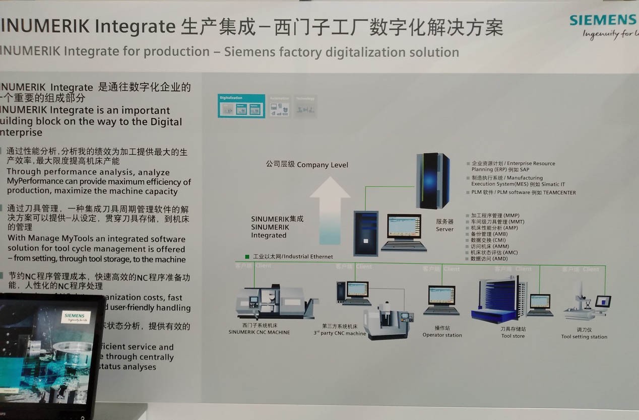 面对网络化、数字化制造时代的到来,全球机床工具行业推出了一系列新技术与新产品。这些技术和产品具备鲜明的网络化、数字化生产装备的特点,具有完整先进的网络方案、强大的通信功能、灵活兼容的开放性和丰富的应用软件,实现了数控系统由“机床控制器”向“数字化制造管控器”转变,数控机床由“制造机器”向“数字化单元”转变。与此同时,一些著名企业利用长期从事数控技术研发积累的特有技术优势和经验,与“互联网+“结合,推出网络化/数字化工厂智能解决方案,协助客户从软硬两方面共同推动数字化工厂的建设和发展。CIMT现场一些代表性的方案如下: