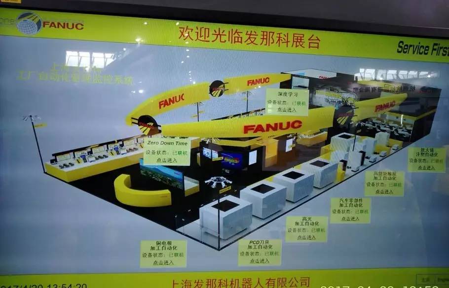 FANUC世界上最著名的数控和机器人厂家之一,其展示的最新数控系统,支持各种工业网络和现场网络,可以将数控机床与PC互联,进行NC程序的传输和现场监控,亦可在CNC上操作办公室的PC,还可以搭配载有通讯专用处理器的快速以太网电路板,同时与多台计算机进行高速数据传输,构建与生产线和工厂主机进行信息交换的生产系统。