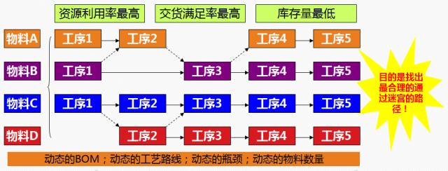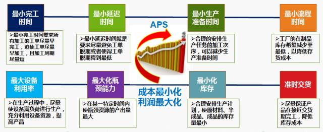 ERP的最大弱点在于详细计划排程 ,为了克服ERP无法解决的问题,一个新的基于有限资源能力的理论在九十年代初开始应用,这就是APS(Advanced Planning and Scheduling,高级计划排程)。 它解决了ERP无法解决的动态过程管理问题。它是基于有限资源能力的优化计划,它将企业资源能力、时间、产品、约束条件、逻辑关系等生产中的真实情况同时考虑,在满足资源约束条件下,均衡生产过程中各种生产资源,在不同的生产瓶颈阶段给出最优的生产排程计划,实现快速排程并对需求变化做出快速反应。
