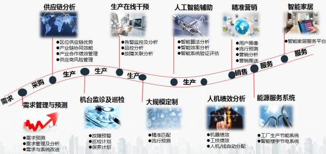 当大量数据从产品生产销售等各个环节收集上来的同时,对这些数据利用大数据处理分析技术又可以形成不同的应用,这些应用将贯穿产品的全生命周期,不但可以促使营销、生产、物流流程进一步优化,提供基于大数据技术的决策,还可以支撑实现大规模定制生产新模式,以及发挥对工业设备的节能降耗、提高寿命的作用。