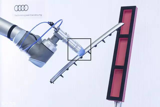 奥迪智能工厂发明的柔性抓取机器人不同于现阶段的抓取机器人,该机器人最大特点在于柔性触手,这种结构类似于变色龙舌头,抓取零件更加灵活。