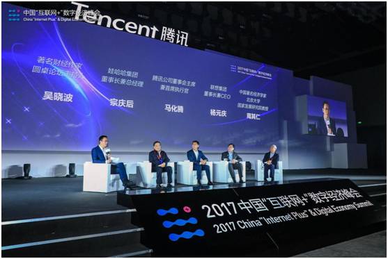 4月20日,2017中国“互联网+”数字经济峰会在杭州举办。该峰会由浙江省经济和信息化委员会与腾讯公司共同主办,以“赋能新结构连接新动能”为主题,共有来自全国的2000多位政企学界人士参会。峰会上,围绕“互联网+”赋能经济转型,著名经济学家、北京大学国家发展研究院教授周其仁、娃哈哈集团董事长兼总经理宗庆后、联想集团董事长兼CEO杨元庆、腾讯公司董事会主席兼CEO马化腾、著名财经作家吴晓波也在大会圆桌论坛上展开脑力激荡。