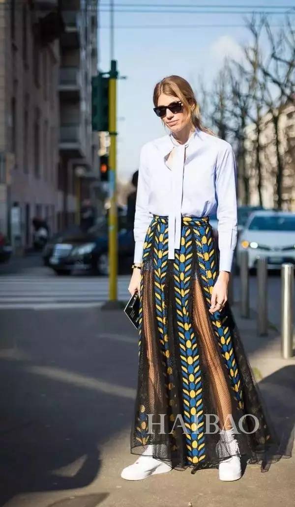 型人街拍演绎纱裙+T恤/衬衫搭配Look