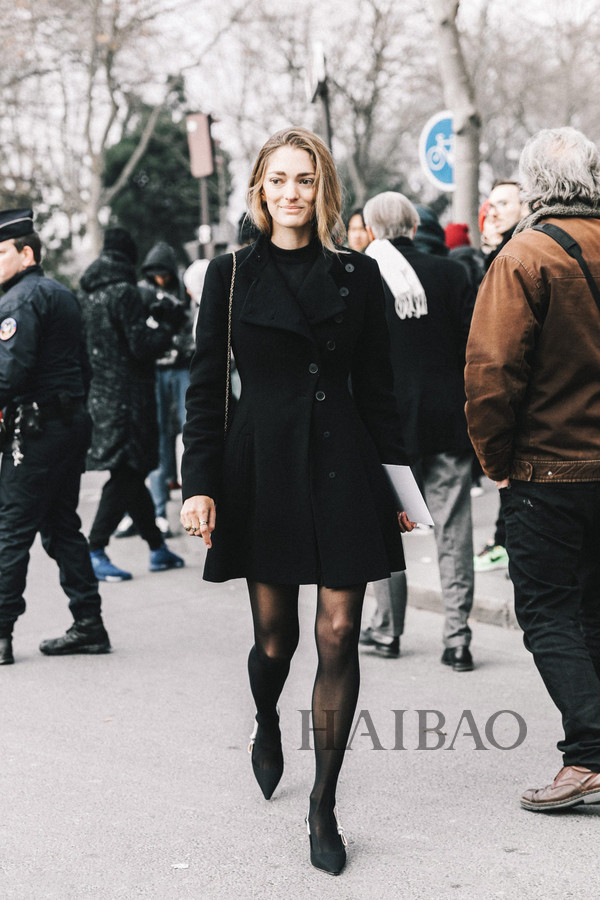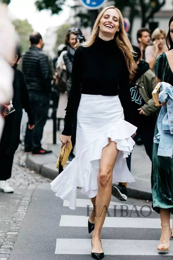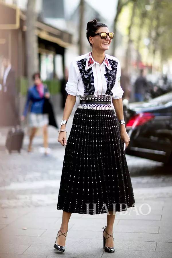 半身裙+中跟鞋街拍搭配Look