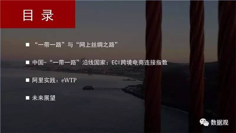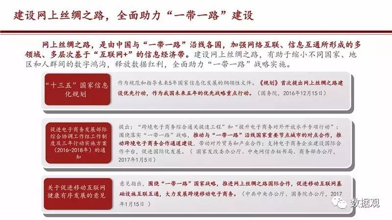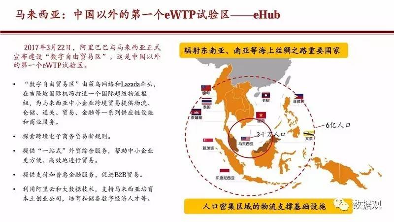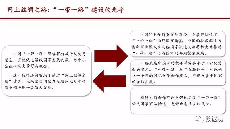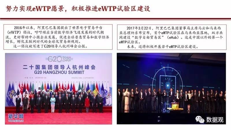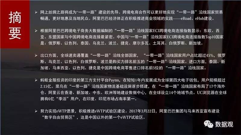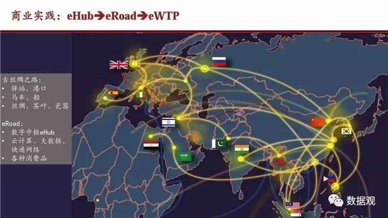 2017年4月21日,阿里研究院与DT财经联合发布《eWTP助力“一带一路”建设——阿里巴巴经济体的实践》报告,这是第一次以大数据的形式,描绘出跨境电商连接起来的网上丝绸之路。